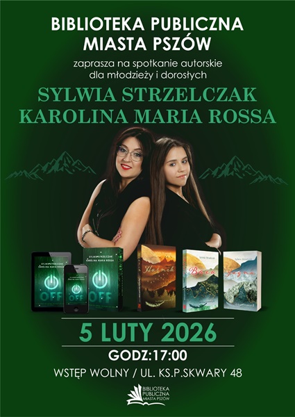Spotkanie autorskie z Sylwią Strzelczak i Karoliną Marią Rossą Środa, 21-01-2026Data publikacji, Środa, 21-01-2026, arybackaAutor, arybacka, 12Ilość wyświetleń, 12